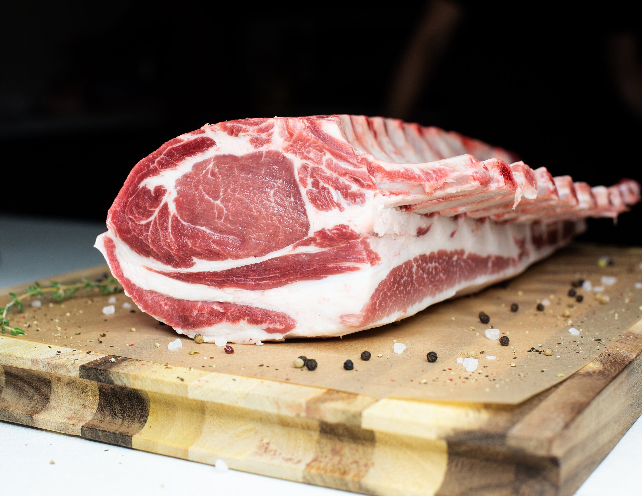 Berkshire Rack of Pork (8 Bone, Partially Trimmed, 7.5 lbs. avg) – Premium Heritage Pork, Ideal for Roasting & Special Occasions